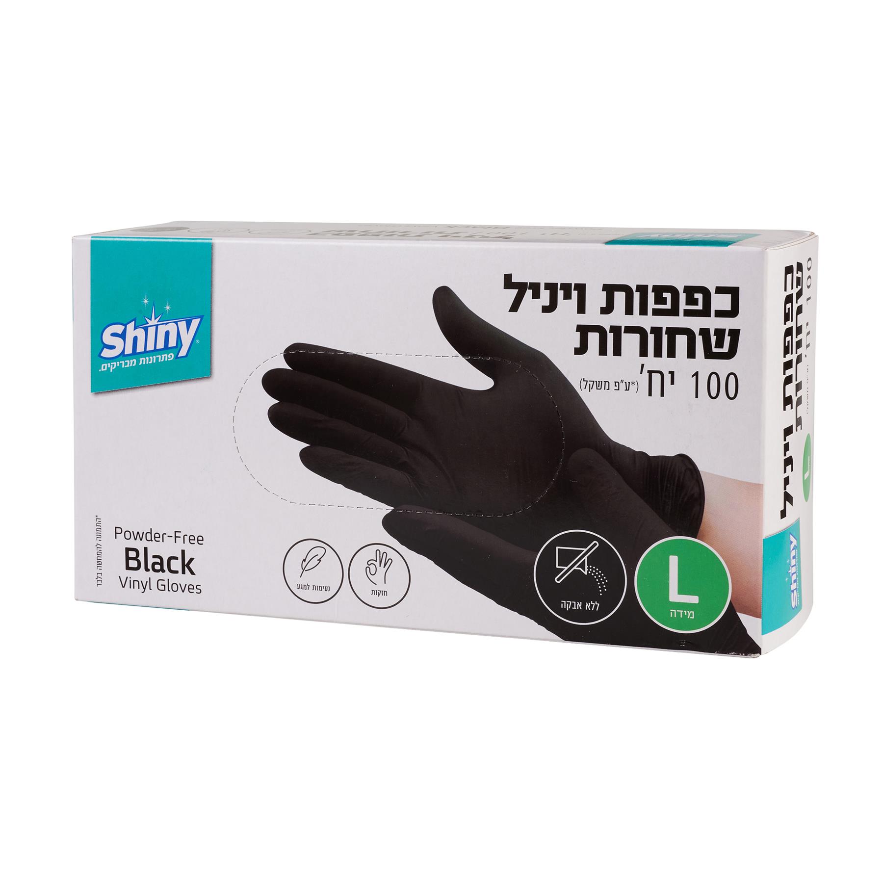 / כפפות ויניל שחורות ללא אבקה L